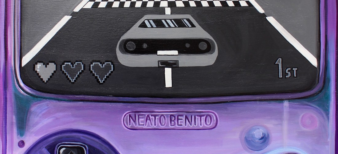 We all grow up someday. For some, childhood ends with a defining moment, for others, it happens without realizing it at all. Do you look back on your formative years with nostalgic reverence? or would you do it differently if you got the chance? Part of growing up is accepting the reality of our own mortality, which is often accompanied by the anxiety that we are running out of time. Race for your Love symbolizes the impermanence of our youth with a video game that is being played on it’s last life. The digital glitch prevents the player from knowing how many laps are left in the race, illustrating the anxiety of passing time, or time remaining. The title of the game “Race for Your Love” could reference the love of a romantic interest, the approval of those we admire, or the ability to accept and appreciate ourselves in this moment. If the game ended now, could you say you won your race?